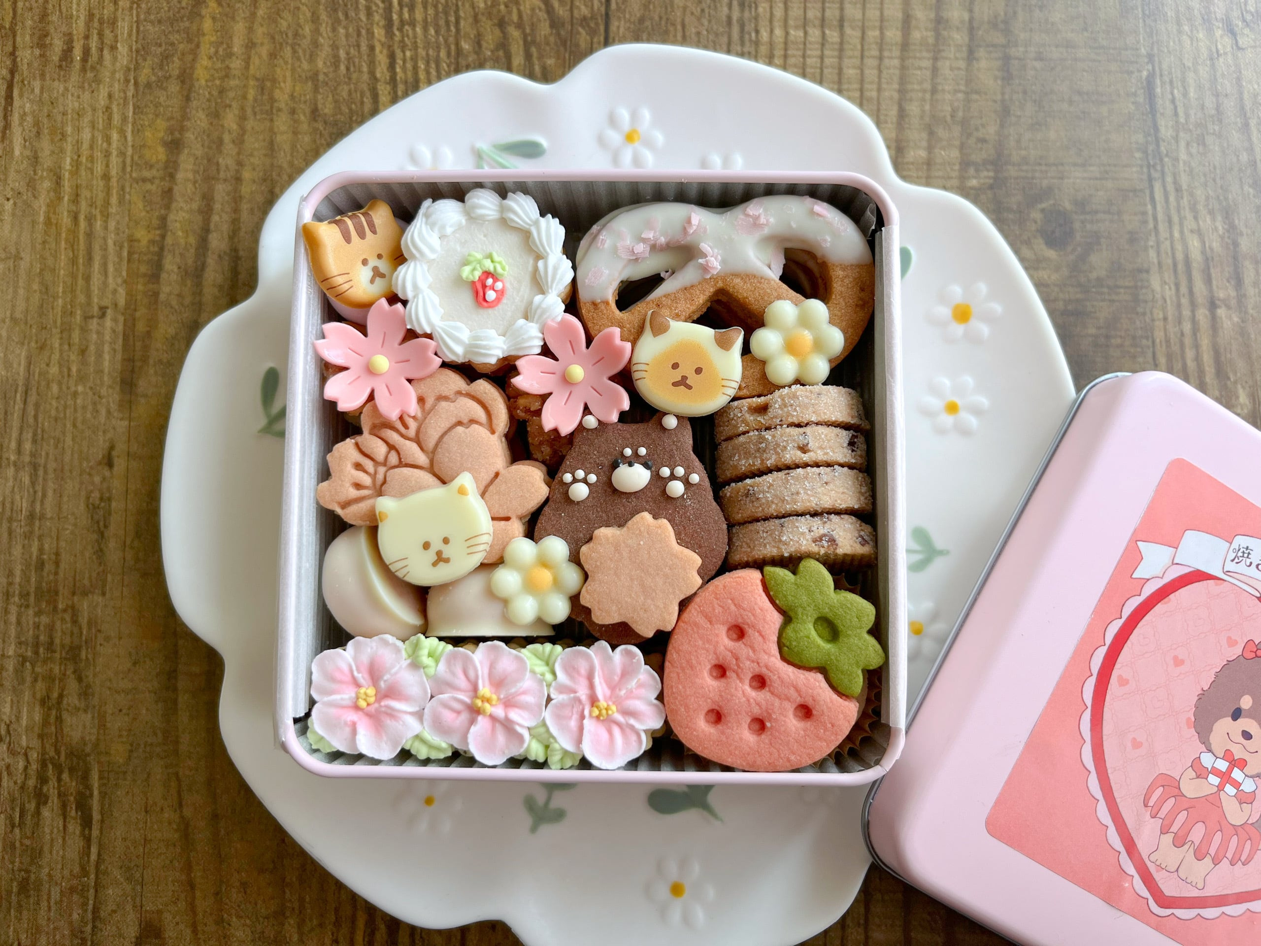 ピンクがいっぱいのクッキー缶ができました♡