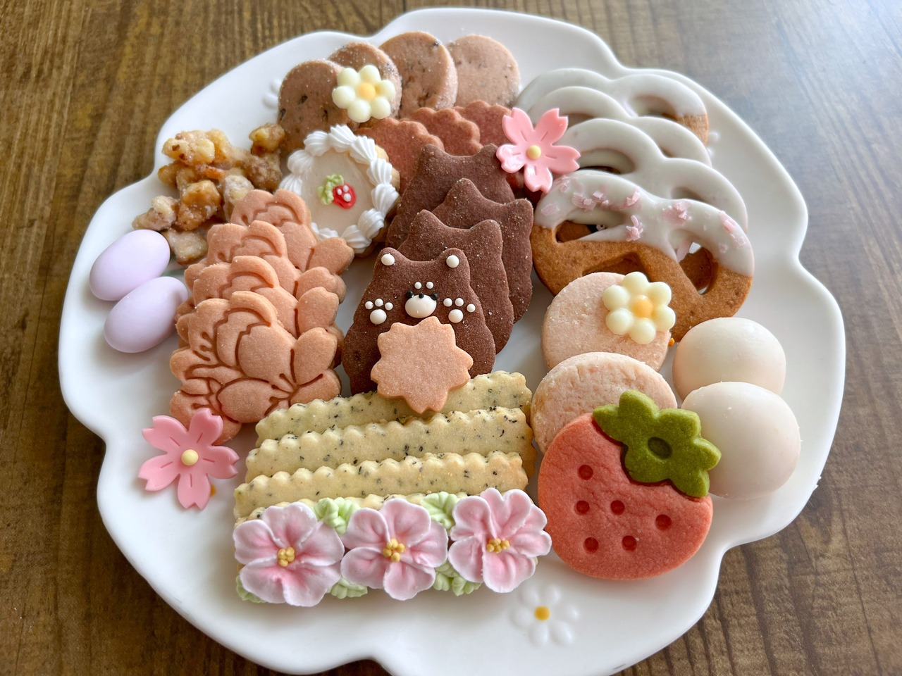 内容量:クッキー30枚+お花チョコ4個+ドラジェ2個+胡桃のキャラメリゼ